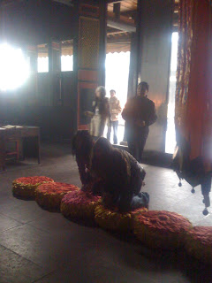 If you can click on this photo, you may be able to see the female monk (?) cleaning a dish. She was meticulous and precise in her work, not paying any attention to us as we walked by.
